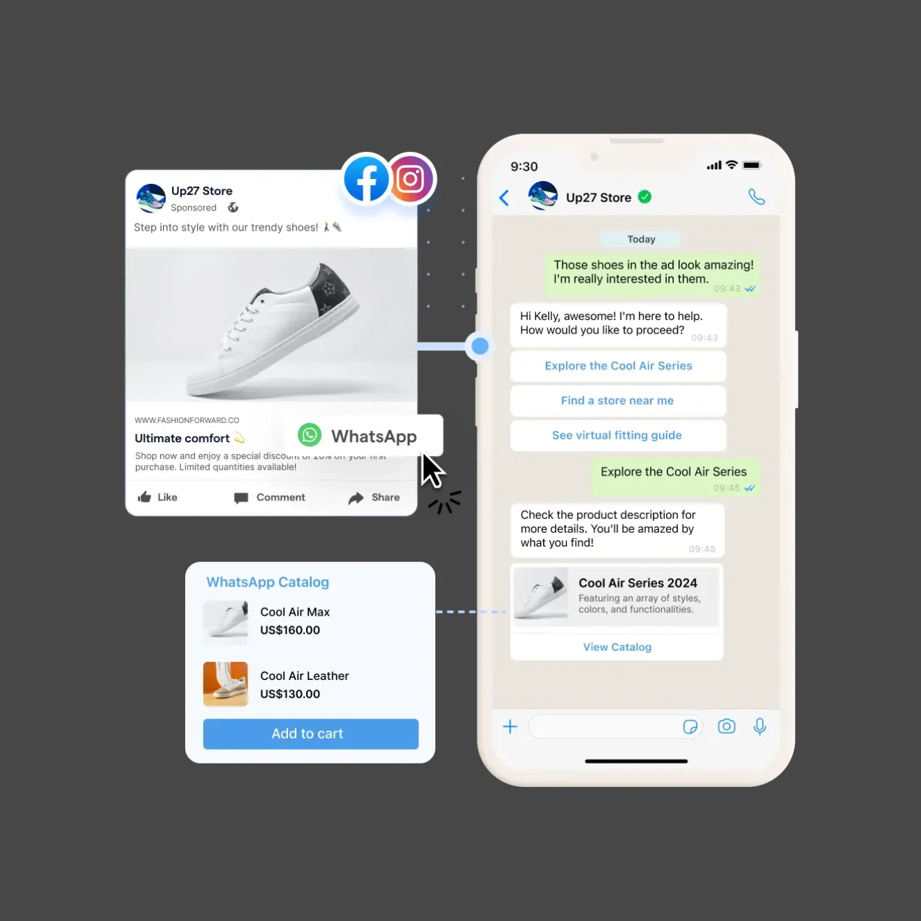 Create CTWA ad campaigns that start one to one WhatsApp conversations.